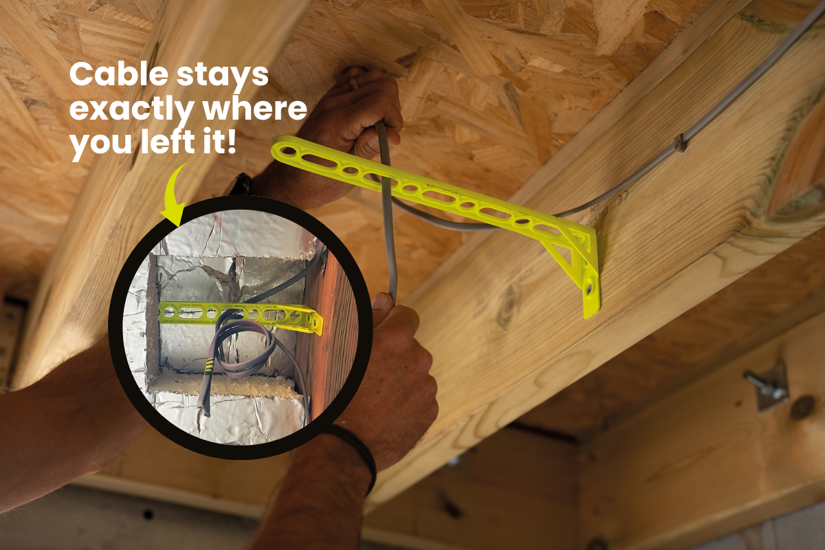 Cableboss is a pre-formed bracket that enables the easy positioning of cables in walls and ceilings. Combined with our FREE mobile app to record locations, your cables will stay exactly where you left them.