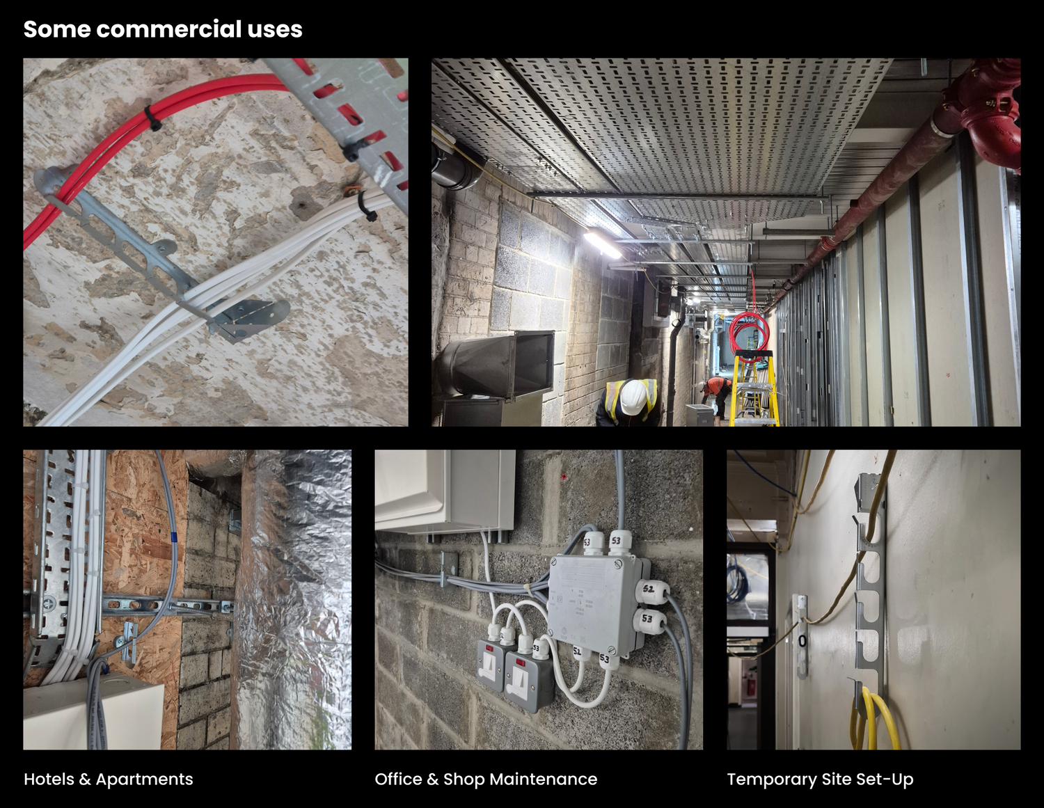 CB03 can be fixed vertically or horizontally to any substrate. Use the pre-drilled 6mm holes to fix with screws or simply nail gun it in! CB03 can be used in various commercial applications for running and positioning cables, such as apartments, hotels, shops, offices and factories.